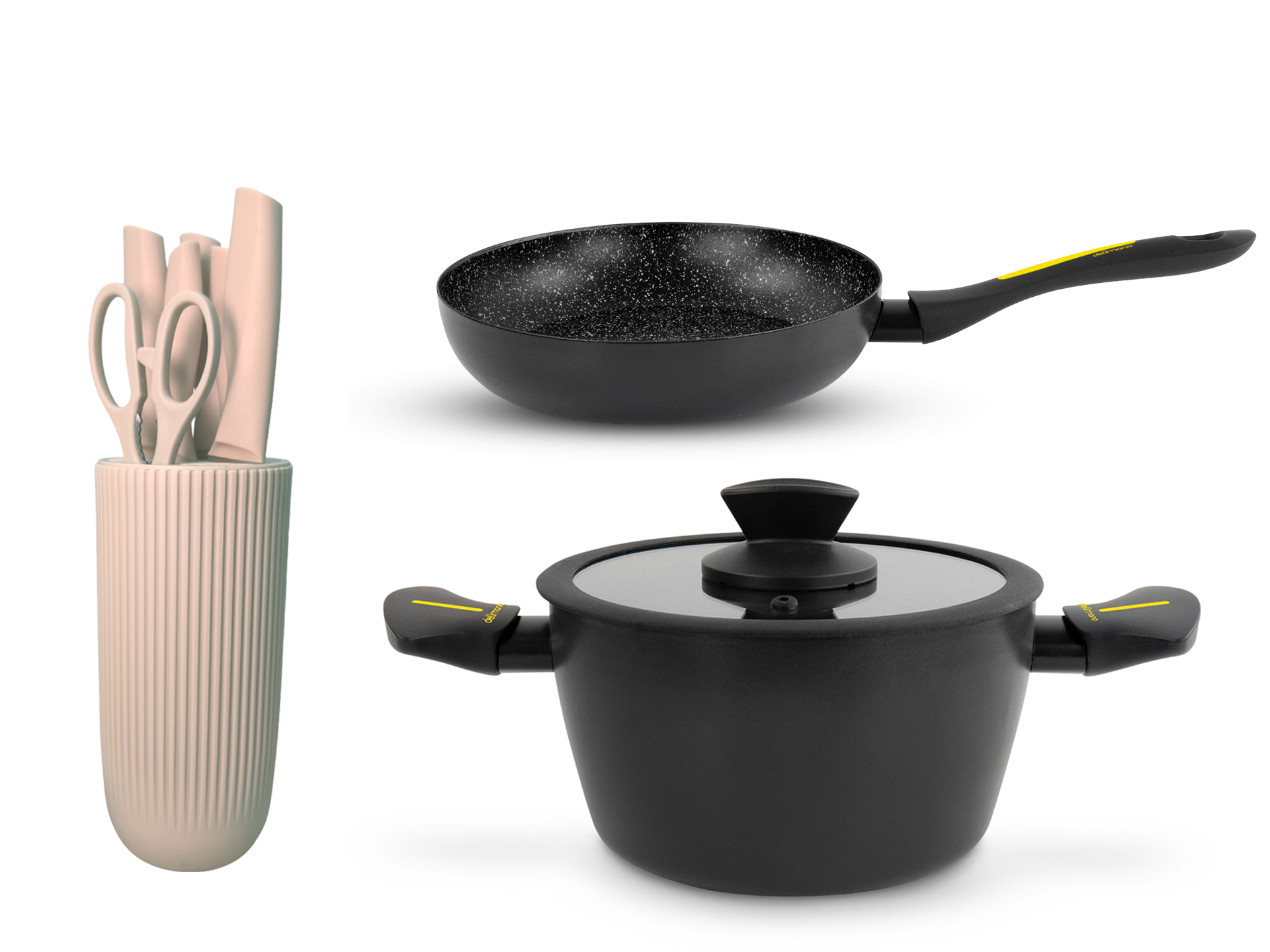 Delimano Eterna Legend Тенџере со капак, Тава за пржење и Сет ножеви