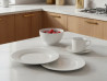Сетот вклучува чинии за главни оброци, чинии за предјадење, чинии за супа или житарки, како и чаши за секаков вкус на пијалоци - од кафе и чај до млеко или топло чоколадо. Чистиот, класичен дизајн одговара на секој стил на маса - минималистички, модерен или традиционален - што го прави овој сет одличен избор за секоја кујна.