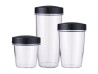 Дизајнирани совршено да одговараат на вашиот Nutrilife Екстрактор, со висок квалитет обезбедуваат оптимални перформанси. Достапни со капацитет од 300 мл., 500 мл. или пак 900 мл. за да ги задоволат сите потреби. Секоја чаша има и капак што ги прави идеални за користење и носење додека сте во движење.