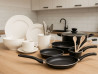 Делимано го претставува Stone Legend Black All-in-One, комплетен сет од 10 дела кој комбинира елегантен дизајн, висок квалитет и максимална функционалност. Со силна основа од јаглероден челик и облога Quantanium® со честички од вистински камен и титаниум, овие садови ја задржуваат топлината и постепено ја дистрибуираат кон храната, задржувајќи ја влагата, витамините и природните ароми.
